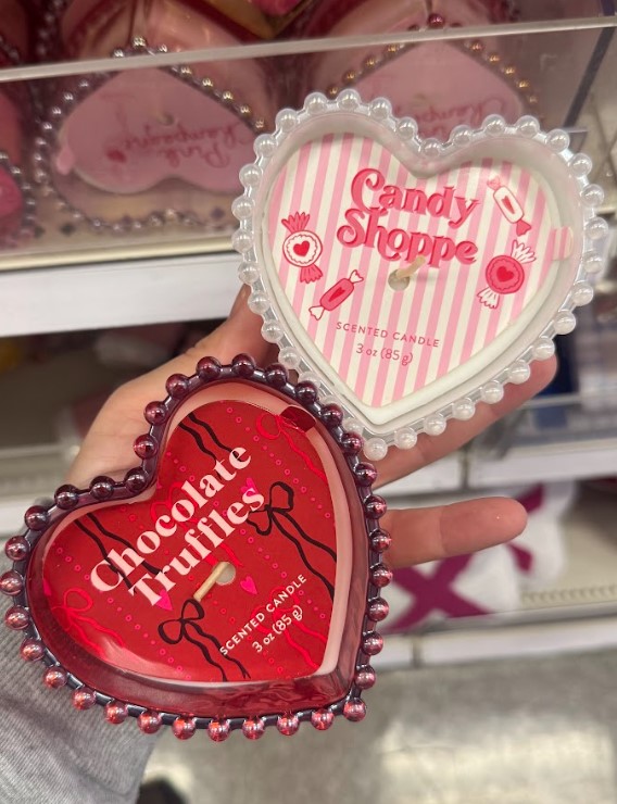 Dessert-inspired scents paired with decorative glass make these candles charming and affordable Valentine’s décor staples.