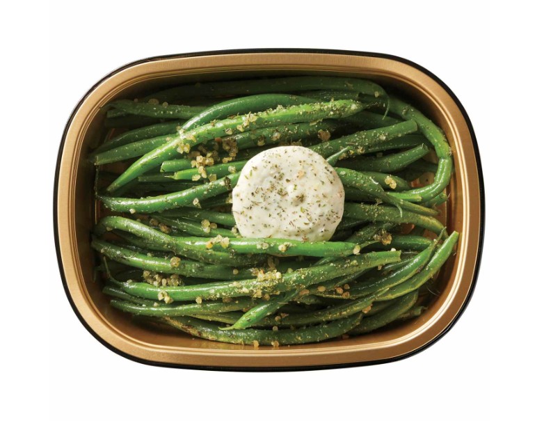 Garlic Parmesan Green Beans: Fresh green beans (not canned!) that steam right in the bag with a pat of garlic butter. They maintain a nice “snap” unlike the mushy casserole version.