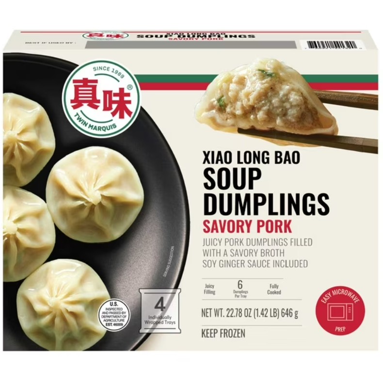 The Product: Frozen Xiao Long Bao (Soup Dumplings) with a pork and ginger filling.