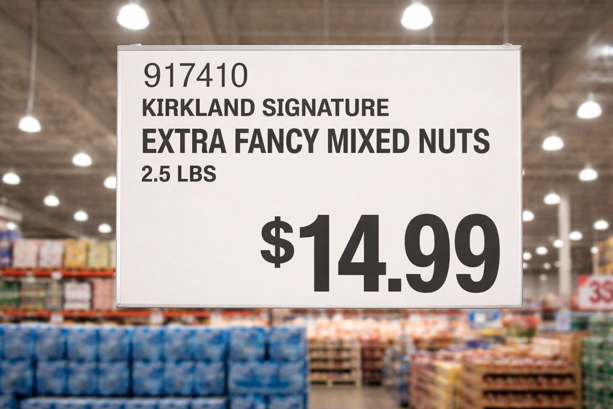 Costco makes it easy to spot organic products by using green price tags instead of the standard white ones. This allows you to scan an entire aisle quickly to find organic meats, produce, and pantry staples without having to read every individual label.