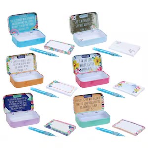 A sentimental favorite that sells out yearly. These tiny, beautifully decorated tins come with a notepad and pencil for writing down prayers or worries—a sweet, thoughtful gift.