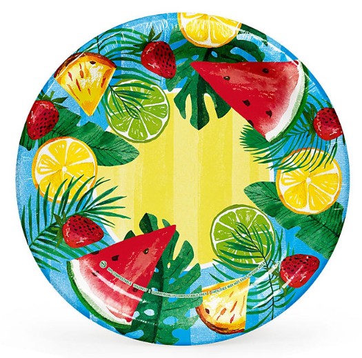 Heavy-duty paper plates with cheerful summer designs make cleanup a breeze.