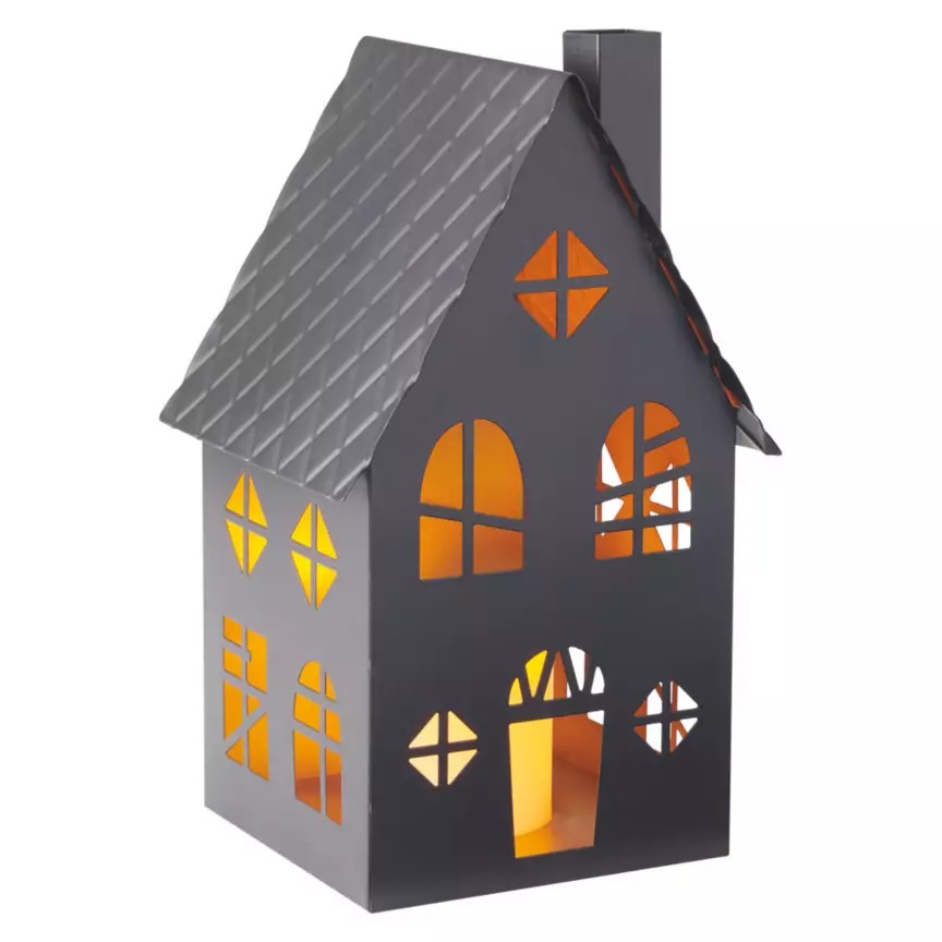 This decorative haunted house has a rustic, slightly spooky look that makes it a fun addition to mantels, shelves, or entryway tables. Made from metal, it’s sturdy and often includes cutouts that let candlelight or string lights shine through for an eerie glow. Some shoppers like to place LED tealights inside to make it part of their evening decor. It’s not oversized, so it fits well in smaller spaces while still creating a strong Halloween vibe. Collectors of Aldi’s seasonal decor pieces often grab this as part of their annual setup.
