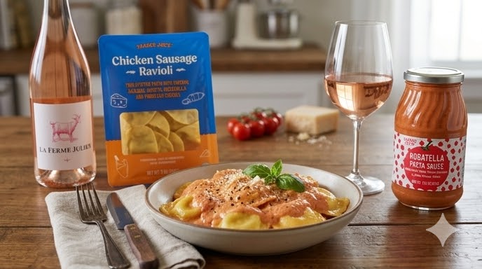 3. Chicken Sausage & Cheese Ravioli + Rosatella Sauce — Total: ~$8.48
