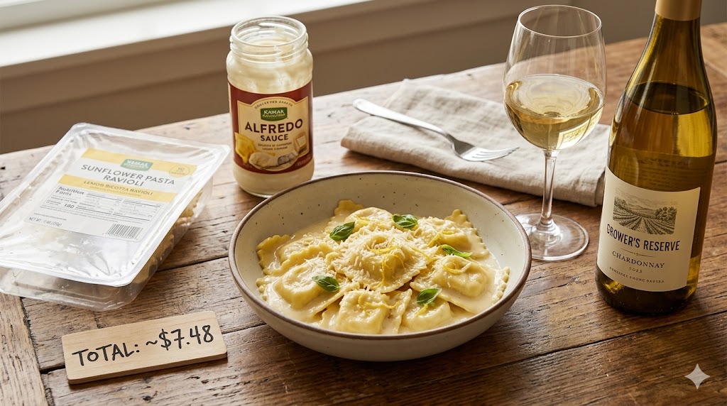 6. Lemon Ricotta Ravioli + Alfredo Pasta Sauce — Total: ~$7.48