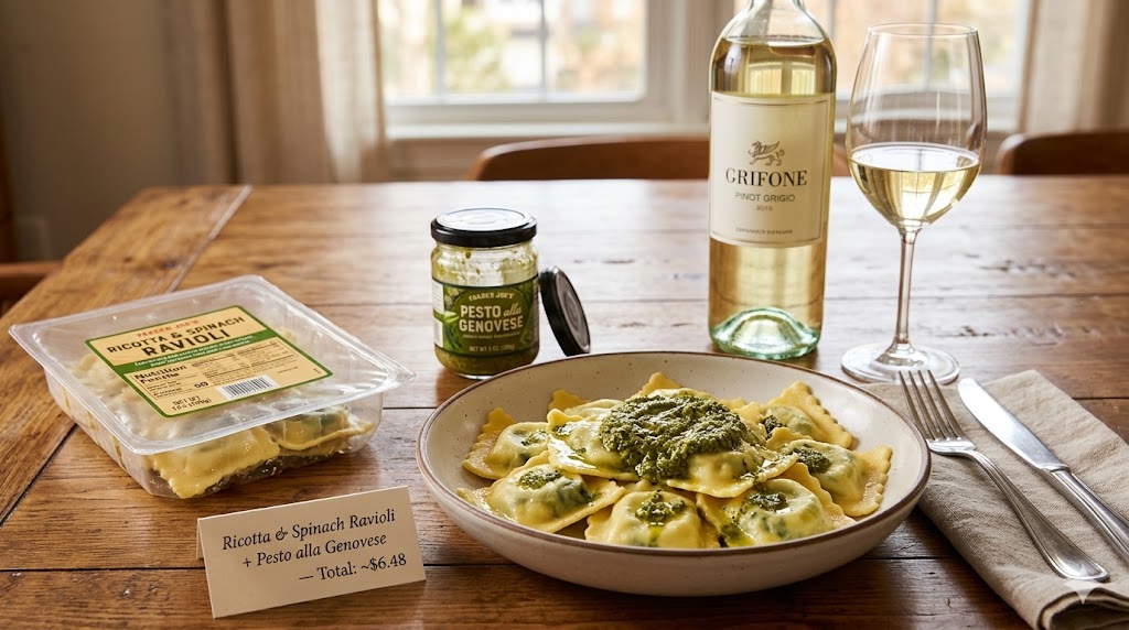 15. Ricotta & Spinach Ravioli + Pesto alla Genovese — Total: ~$6.48