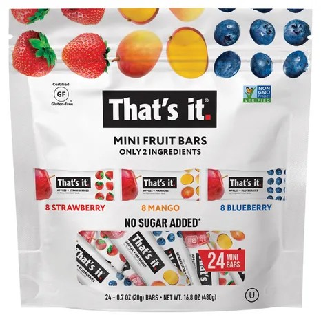 All-fruit bars with no added sugar, great for a healthy snack on the go.