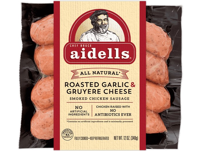 6. Aidells Roasted Garlic & Gruyere Cheese Sausage – $7.49 (12 oz pack)