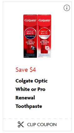 10. Colgate Optic White or Pro Renewal Toothpaste — Save $4
