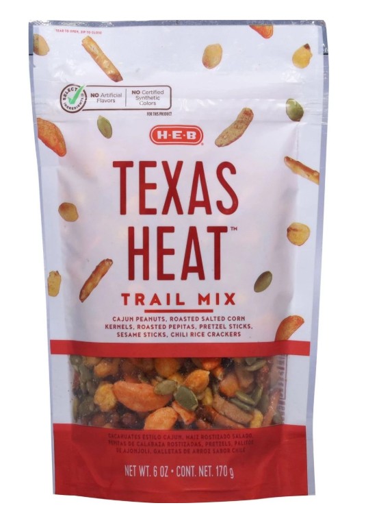 H-E-B Trail Mix (e.g., Texas Heat) ($2.55 for 6 oz)