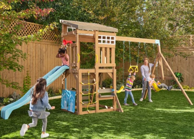 Transform your backyard into a playground paradise with the Kidkraft Modern Outdoor Swing Set, designed for endless hours of fun.