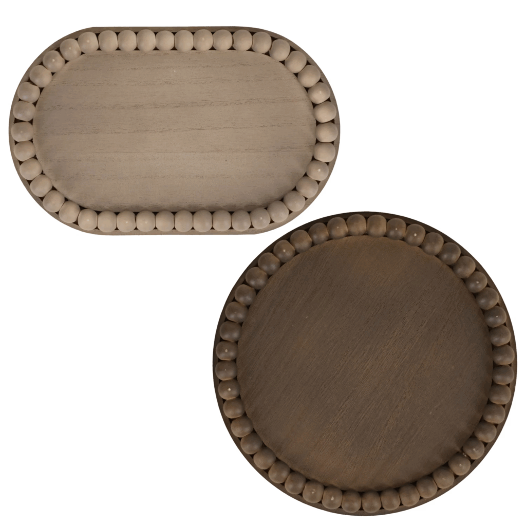 The Review: With their natural wood finish and trendy beaded detailing, these trays look like they were plucked straight from a coastal boutique or a Crate & Barrel catalog. They are sturdy, well-proportioned for coffee table styling, and provide a neutral, sophisticated base for candles or greenery.