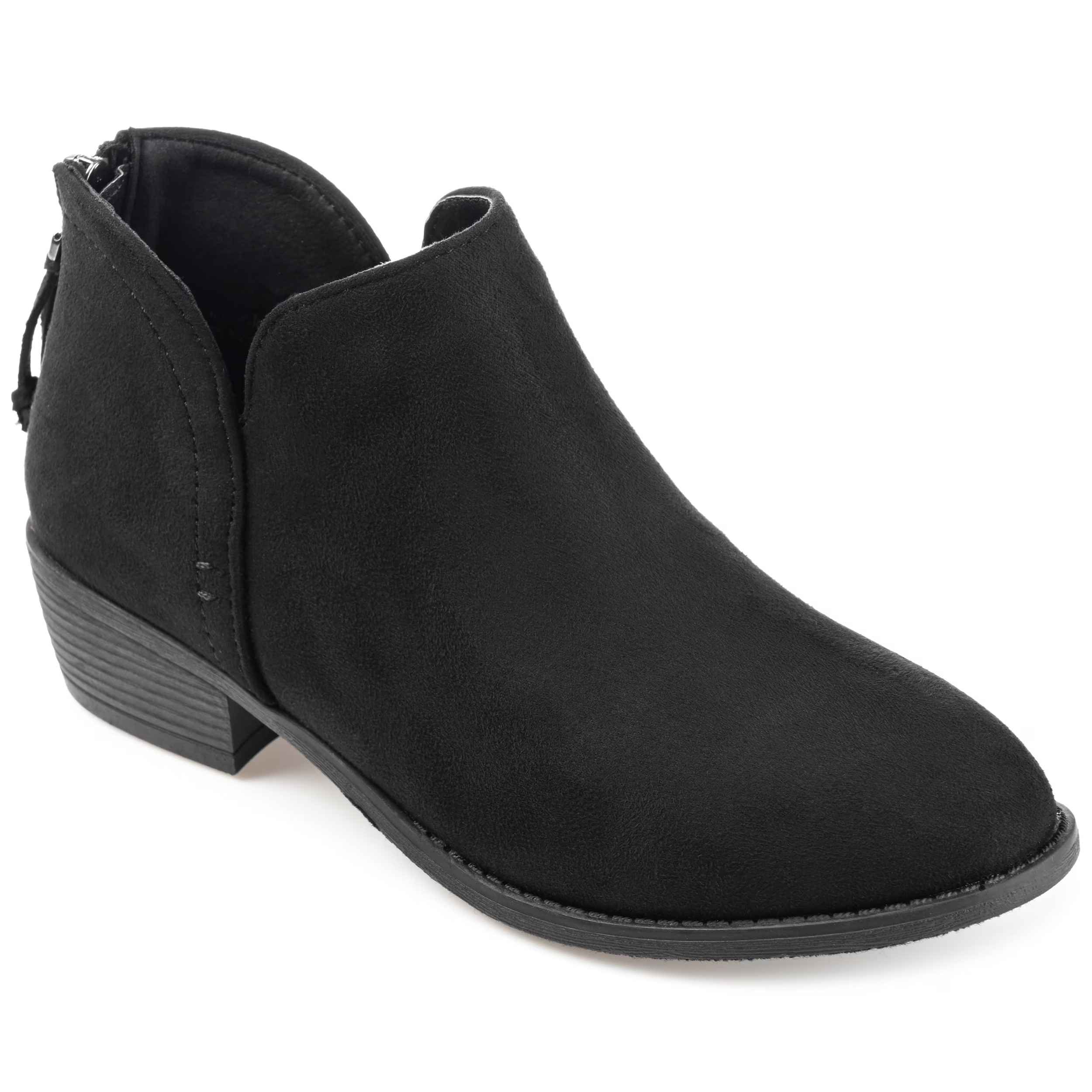 - These booties fit like a dream with their low block heel and flexible side split, making them easy to walk in all day without discomfort. The faux suede material looks high-end, and the tassel zipper adds a cute detail, available in wide widths for a perfect match.