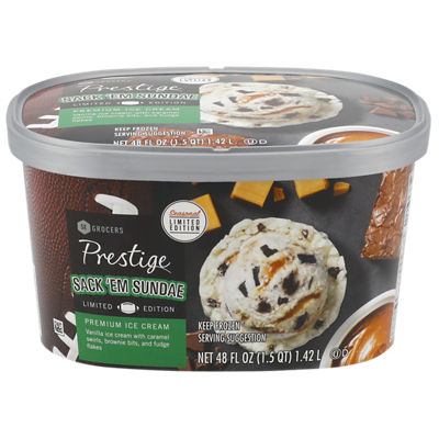 - Vanilla ice cream loaded with caramel swirls, brownie bits, and fudge flakes.