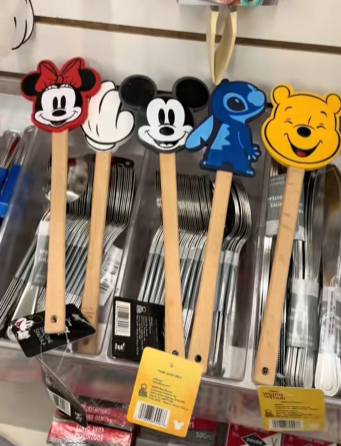 - Black spoons and spatulas with Mickey handles; Disney magic meets practical cooking tools for fans of all ages.