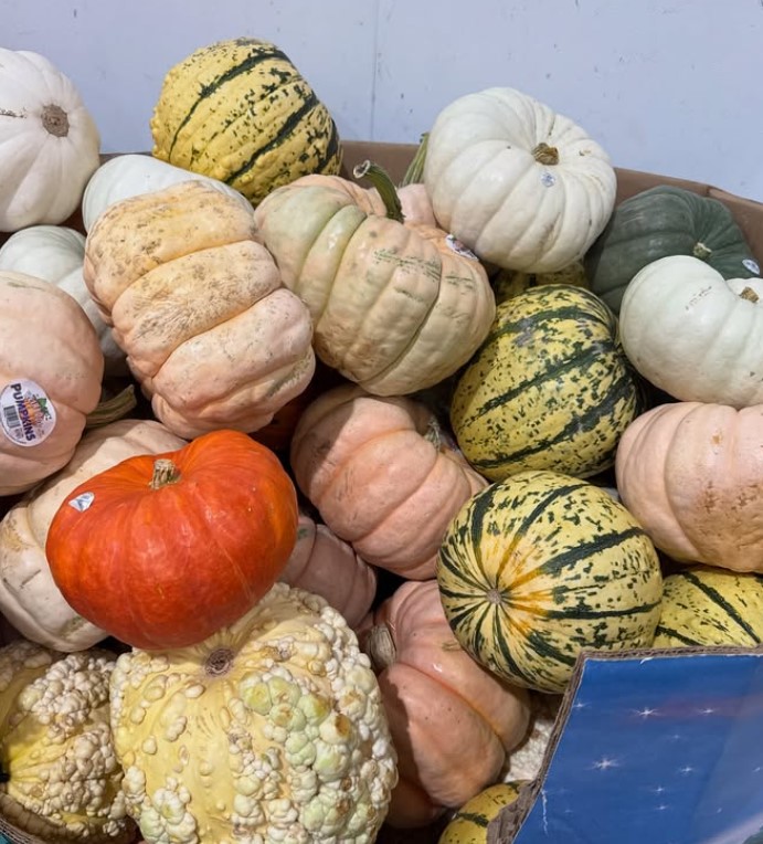 Keep in a cool, dry spot; wipe gently to remove dust; compost or cook after display season.